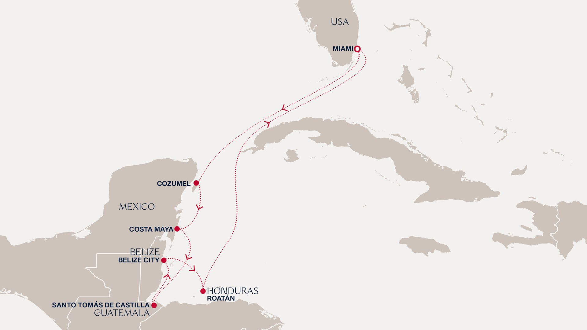 The turquoise embrace of the Caribbean awaits as you set sail from vibrant Miami to snorkel in Cozumel’s colourful coral reefs and uncover hidden stories in Costa Maya’s ancient ruins. In Santo Tomás de Castilla, explore Mayan heritage before Belize City tempts you with its spectacular wildlife and idyllic beaches. A serene day onboard, indulging in the elegance of your Home at Sea, leads to Roatán’s paradise. Refreshed by the rhythm of the tropics, return to Miami’s life and soul.