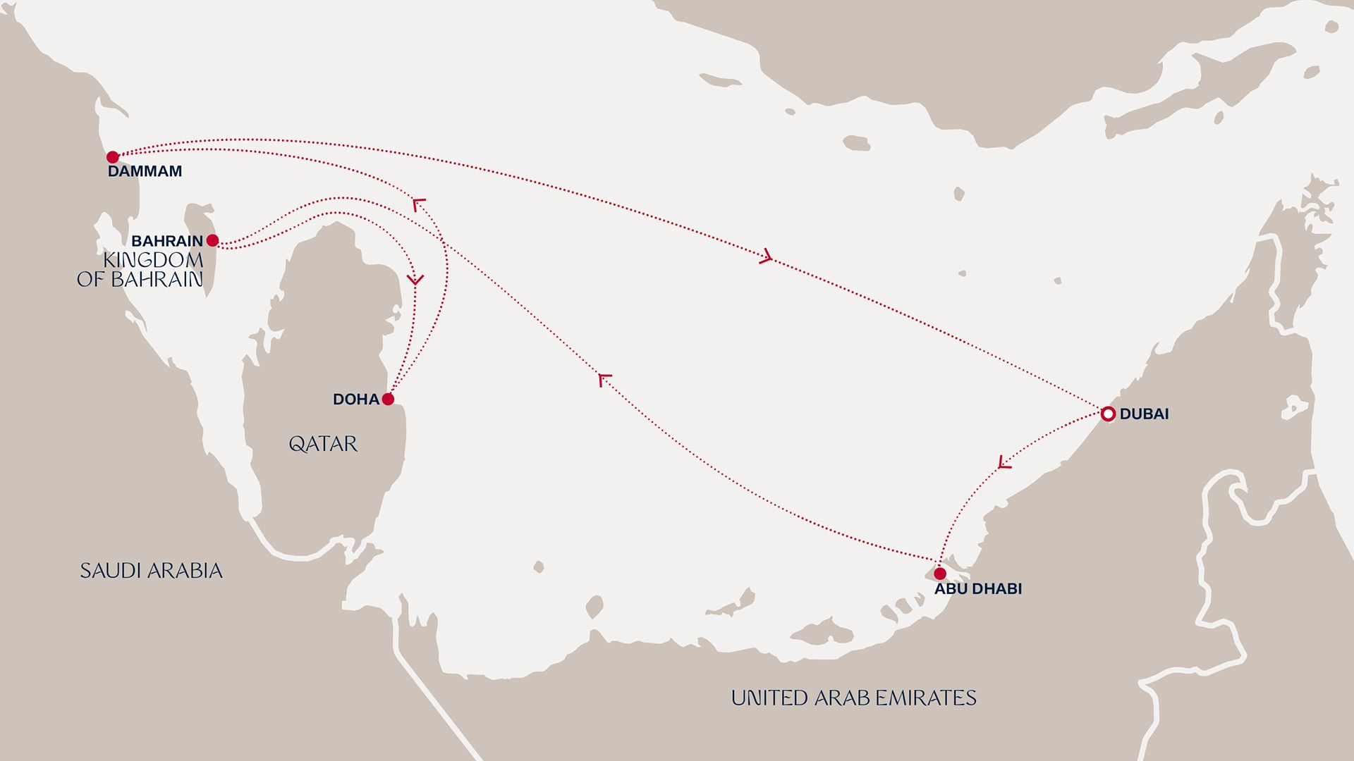 Immerse yourself in an alluring Arabian Gulf adventure. From vibrant Dubai, we embark on a journey to explore mesmerising new destinations, starting with Abu Dhabi, home of ancient culture and dramatic sandscapes, and onwards to Manama, where historic charm meets modern elegance. In Doha, uncover cultural treasures before drifting to Dammam’s scenic coastline. Enjoy a day at sea to relax and embrace the Ocean State of Mind, then return to the iconic skyline of Dubai.